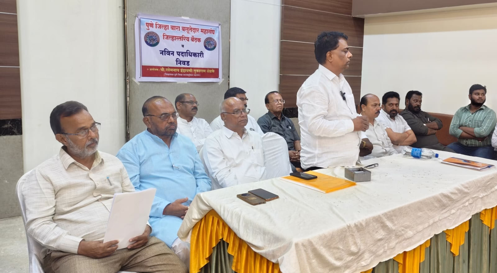 बैठकीत अभिमन्यू दहितुले यांची बारा बलुतेदार महासंघाच्या पुणे जिल्हा कार्याध्यक्षपदी निवड करण्यात आली. कल्याणराव दळे यांच्या हस्ते दहितुले यांना नियुक्तीपत्र देऊन सत्कार करण्यात आला.