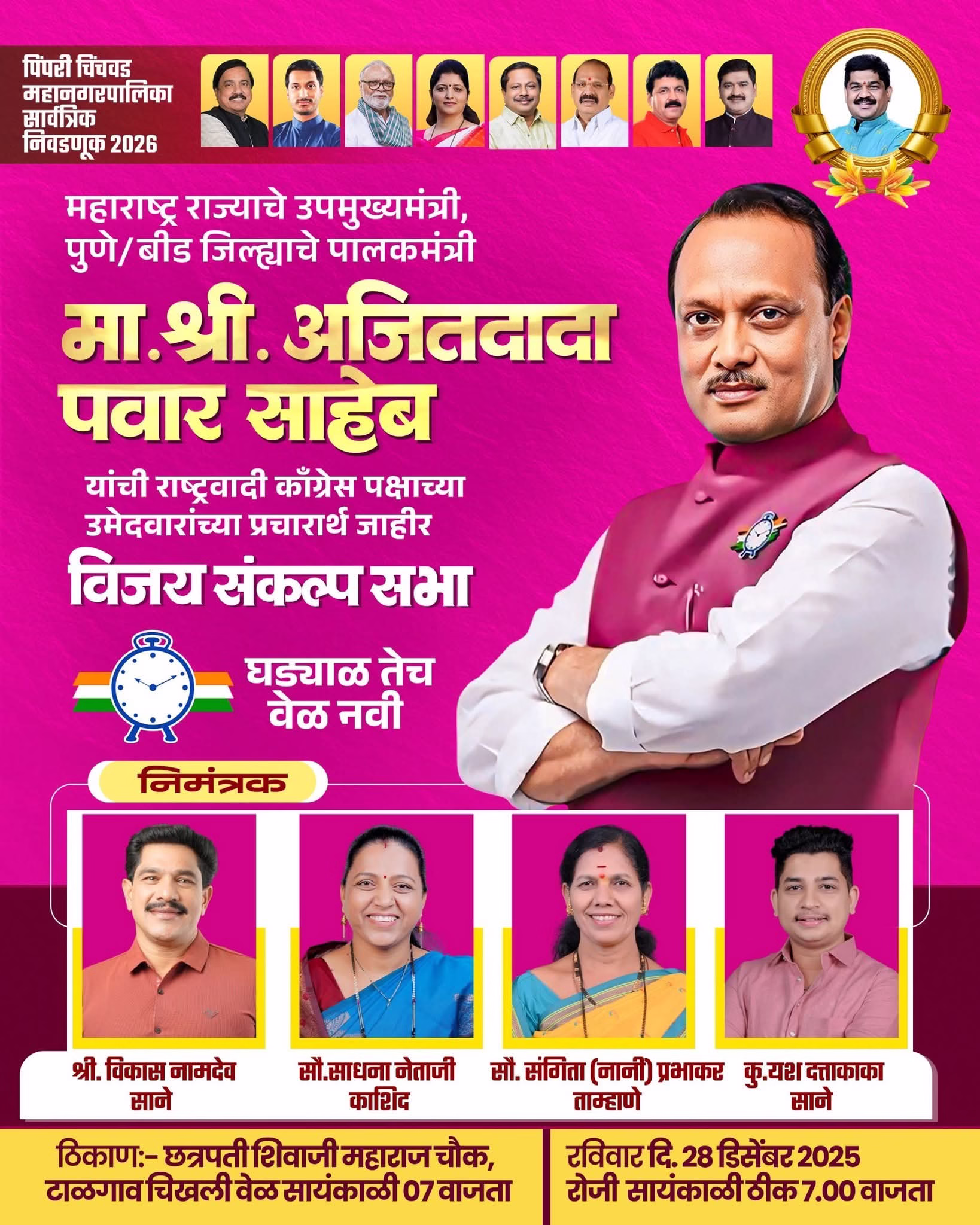 рдкрд┐рдВрдкрд░реА-рдЪрд┐рдВрдЪрд╡рдб рдорд╣рд╛рдирдЧрд░рдкрд╛рд▓рд┐рдХрд╛ рдирд┐рд╡рдбрдгреБрдХреАрдЪреА рд░рдгрдзреБрдорд╛рд│реА рдЖрддрд╛ рдирд┐рд░реНрдгрд╛рдпрдХ рдЯрдкреНрдкреНрдпрд╛рдд рдкреЛрд╣реЛрдЪрдд рдЕрд╕рддрд╛рдирд╛, рд░рд╛рдЬреНрдпрд╛рдЪреЗ рдЙрдкрдореБрдЦреНрдпрдордВрддреНрд░реА рддрдерд╛ рд░рд╛рд╖реНрдЯреНрд░рд╡рд╛рджреА рдХрд╛рдБрдЧреНрд░реЗрд╕рдЪреЗ рдЬреНрдпреЗрд╖реНрда рдиреЗрддреЗ рдЕрдЬрд┐рдд рдкрд╡рд╛рд░ рдереЗрдЯ рдкреНрд░рдЪрд╛рд░рд╛рдЪреНрдпрд╛ рдореИрджрд╛рдирд╛рдд рдЙрддрд░рд▓реЗ рдЖрд╣реЗрдд. рд░рд╡рд┐рд╡рд╛рд░реА рд╕рд╛рдпрдВрдХрд╛рд│реА рдареАрдХ рен рд╡рд╛рдЬрддрд╛ рдкреНрд░рднрд╛рдЧ рдХреНрд░рдорд╛рдВрдХ рез рдордзреНрдпреЗ рд░рд╛рд╖реНрдЯреНрд░рд╡рд╛рджреА рдХрд╛рдБрдЧреНрд░реЗрд╕рдЪреНрдпрд╛ рдЕрдзрд┐рдХреГрдд рдкреНрд░рдЪрд╛рд░рд╛рдЪрд╛ рд╢реБрднрд╛рд░рдВрдн рдЕрдЬрд┐рдд рдкрд╡рд╛рд░ рдпрд╛рдВрдЪреНрдпрд╛ рд╣рд╕реНрддреЗ рд╣реЛрдгрд╛рд░ рдЕрд╕реВрди, рддреНрдпрд╛рдореБрд│реЗ рд╕рдВрдкреВрд░реНрдг рд╢рд╣рд░рд╛рддреАрд▓ рд░рд╛рдЬрдХреАрдп рд╡рд╛рддрд╛рд╡рд░рдг рдЪрд╛рдВрдЧрд▓реЗрдЪ рддрд╛рдкрдгреНрдпрд╛рдЪреА рдЪрд┐рдиреНрд╣реЗ рдЖрд╣реЗрдд.
