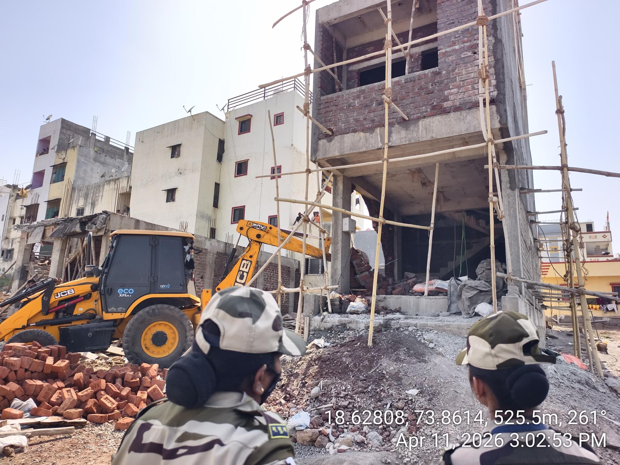 याशिवाय, ११ एप्रिल २०२६ रोजी प्रभाग क्र. ३ भोसरी (चक्रपाणी वसाहत) व प्रभाग क्र. ४ दिघी येथील आणखी ०५ अनधिकृत बांधकामांवर कारवाई करण्यात आली असून, त्याचे एकूण क्षेत्रफळ ६ हजार १५० चौ.फूट आहे.