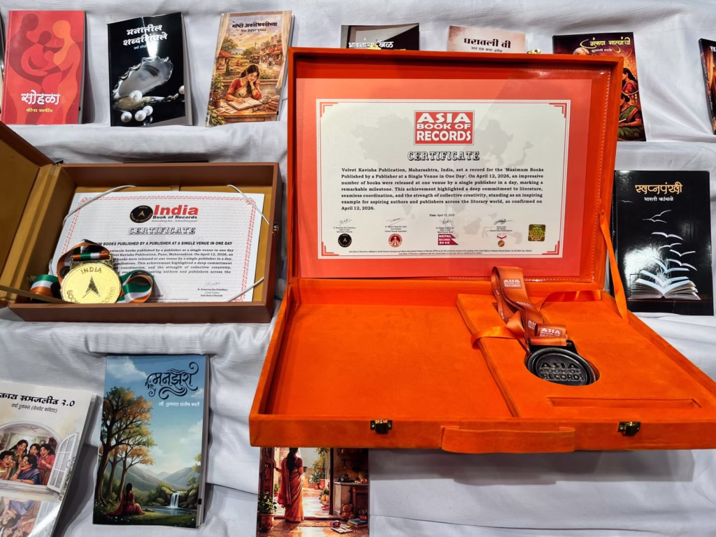 पिंपरी-चिंचवड : वेलवेट पब्लिकेशन आणि झेप सामाजिक संस्था यांच्या पुढाकारातून ४४ लेखकांची ५० पुस्तके एकाच वेळी प्रकाशित करून अनोखा जागतिक विक्रम प्रस्थापित करण्यात आला. या उल्लेखनीय उपक्रमाची नोंद एशिया बुक ऑफ रेकॉर्ड्स तसेच इंडिया बुक ऑफ रेकॉर्ड्समध्ये करण्यात आली आहे. साहित्यप्रेमींच्या मोठ्या उपस्थितीत हा सोहळा उत्साहात पार पडला.